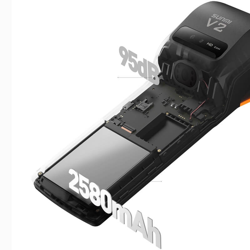 Sunmi V2 được trang bị PIN chất lượng cao 2580mAh 7.6V Li-Po thoải mái sử dụng trong một ngày, trong trường hợp pin yếu thì vẫn không ảnh hưởng đến tốc độ và chất lượng bản in của máy in 58mm. Ngoài ra Pin của máy Sunmi V2 được trang bị chế độ tự động ngắt khi sạc đầy hoặc pin yếu giảm quá nhanh, giúp kéo dài tuổi thọ máy in.