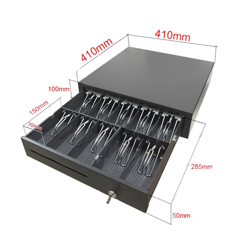Với kích thước chỉ 410mm x 410mm x 120mm, ngăn kéo đựng tiền KENKO M411 rất dễ dàng để vừa với bất kỳ không gian làm việc nào, kể cả những nơi có không gian nhỏ hẹp.
